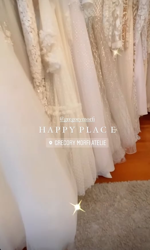 Σε ανάρτηση που έκανε η ίδια μέσω insta storiew την βλέπουμε να ποζάρει χαμογελαστή φορώντας ένα αρκετά ιδιαίτερο νυφικό με δαντελένια λουλούδια στο μπούστο και σκίσιμο στο πλάι.