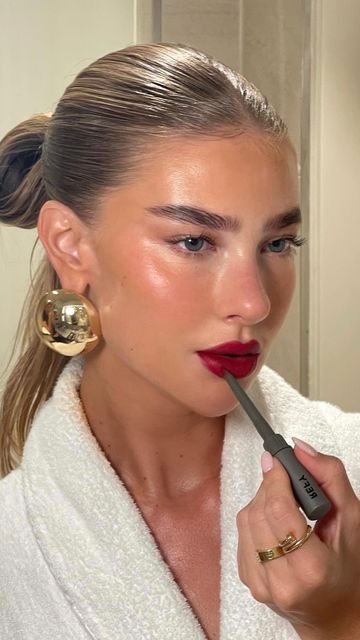 Το έντονο κόκκινο κάνει δυναμικό comeback και μετατρέπεται ξανά στο απόλυτο statement. Τα χείλη κλέβουν την παράσταση, ενώ το υπόλοιπο μακιγιάζ παραμένει πιο διακριτικό, δημιουργώντας ένα αποτέλεσμα κλασικό, τολμηρό και απόλυτα σύγχρονο.
