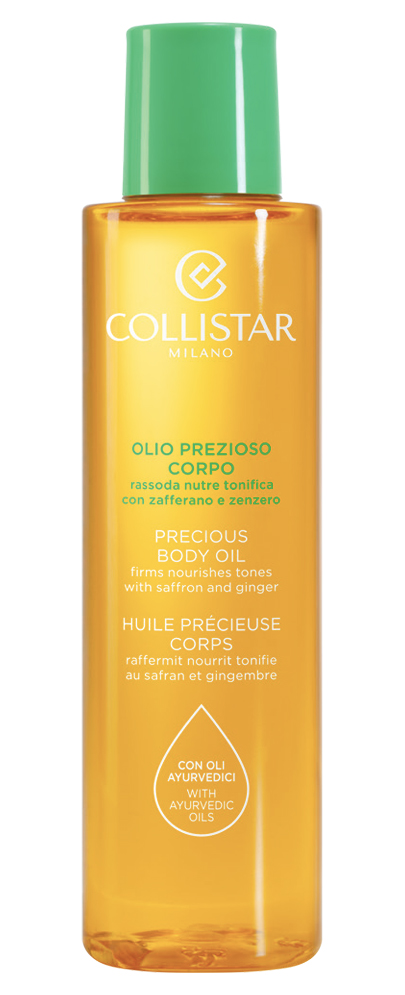 Συνδυάζει την τεχνογνωσία της Collistar με τις ιδιότητες των επιλεγμένων λαδιών ayurvedic (σουσάμι, neem και damask τριαντάφυλλο) για να προσφέρει σύσφιξη, θρέψη και τόνωση του σώματος. Το σαφράν ενισχύει τη χαλαρωτική δράση του λαδιού, ενώ το τζίντζερ διεγείρει τη μικροκυκλοφορία. Ένα ενεργό εκχύλισμα βανίλιας που δημιουργεί μια ευχάριστη ζεστή αίσθηση. Ιδανικό για μασάζ και μπορεί να χρησιμοποιηθεί στο πρόσωπο και στα μαλλιά. (Συσκευασία 200 ml)