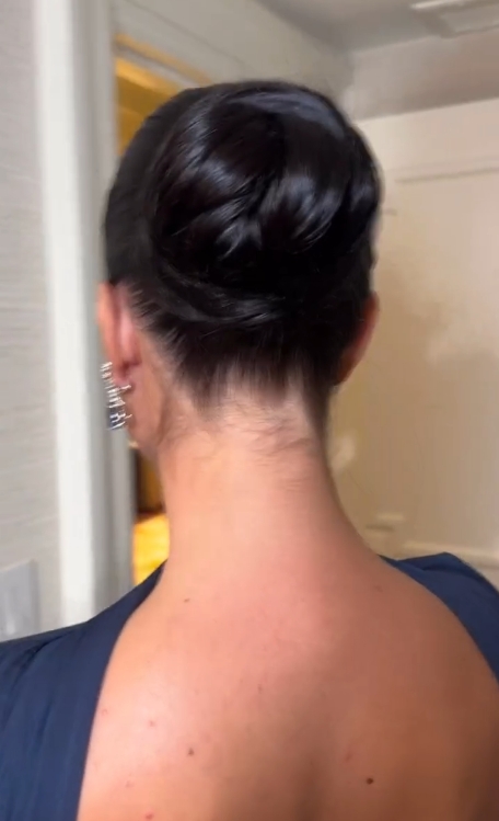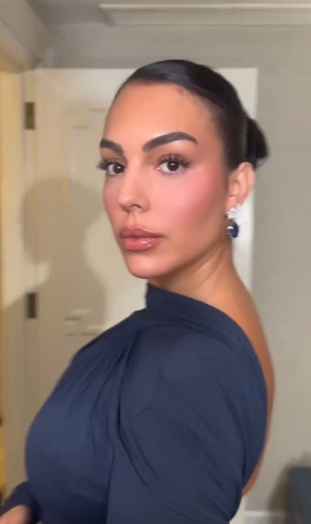 Η Georgina Rodriguez άστραψε μέσα στην εντυπωσιακή μπλε τουαλέτα της, με μια ανοιχτή πλάτη που τόνιζε τις καμπύλες της. Για τα μαλλιά της, ο Έλληνας hairstylist δημιούργησε ένα sleek και λαμπερό bun, που αναδείκνυε πλήρως τη θεαματική γραμμή του φορέματος και πρόσφερε μια εμφάνιση υψηλής αισθητικής.