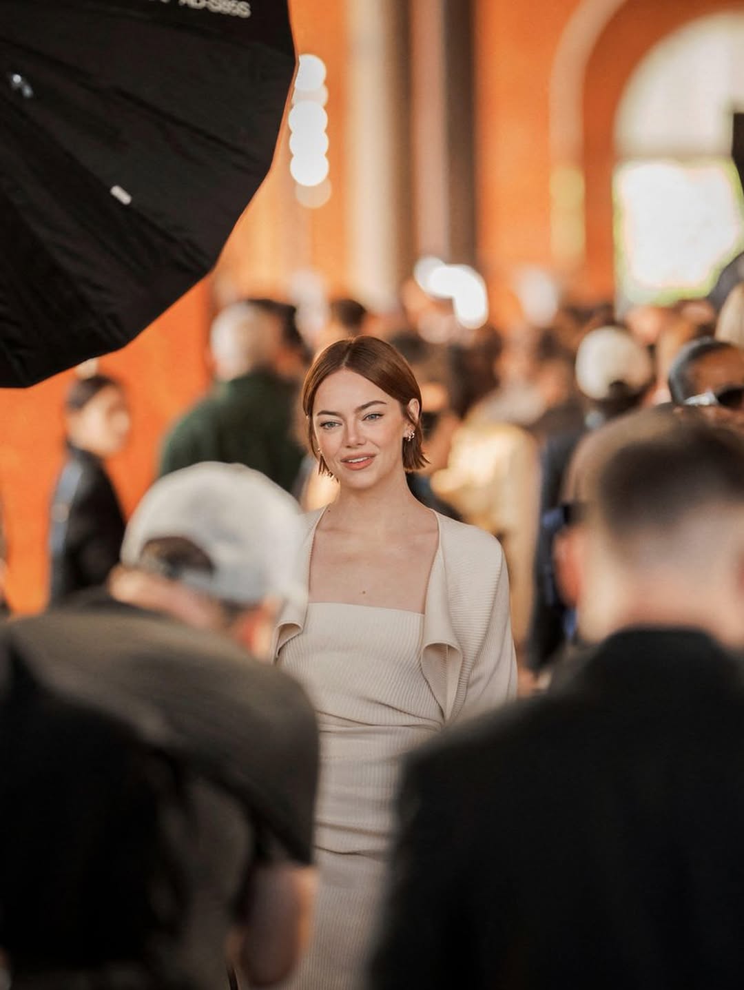 Για το afterparty της Louis Vuitton, η Stone άλλαξε σε ένα μαύρο little black dress και έδειξε ξανά το νέο της καρέ. Αυτή τη φορά, η Roszak το χτένισε με πλαϊνή χωρίστρα και ένα διακριτικό «φτερό» στις άκρες, εμπνευσμένο από τα 90s.
