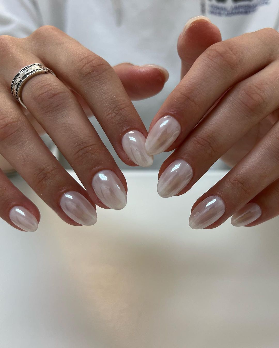 Τα milky νύχια, λευκά ή ημιδιάφανα, συνεχίζουν να είναι τεράστια τάση. Είναι καθαρά, elegant και ταιριάζουν με όλα, είναι ιδανικά για την Ανάσταση και πιο formal εμφανίσεις.