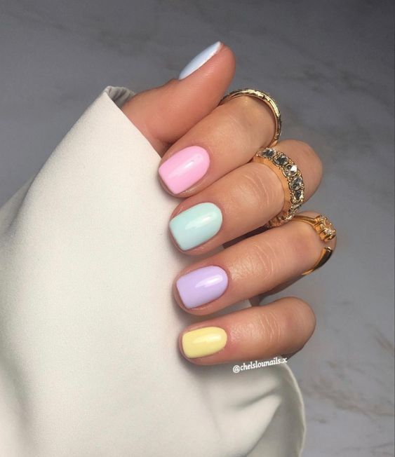 Ροζ, λιλά, baby blue, μέντα και φυσικά το παστέλ κίτρινο είναι τα χρώματα που κυριαρχούν. Είναι φωτεινά αλλά ταυτόχρονα διακριτικά, δίνοντας έναν ρομαντικό και φρέσκο αέρα. Μπορείτε να κάνετε mix & match διαφορετικά παστέλ σε κάθε νύχι για ένα playful αποτέλεσμα.