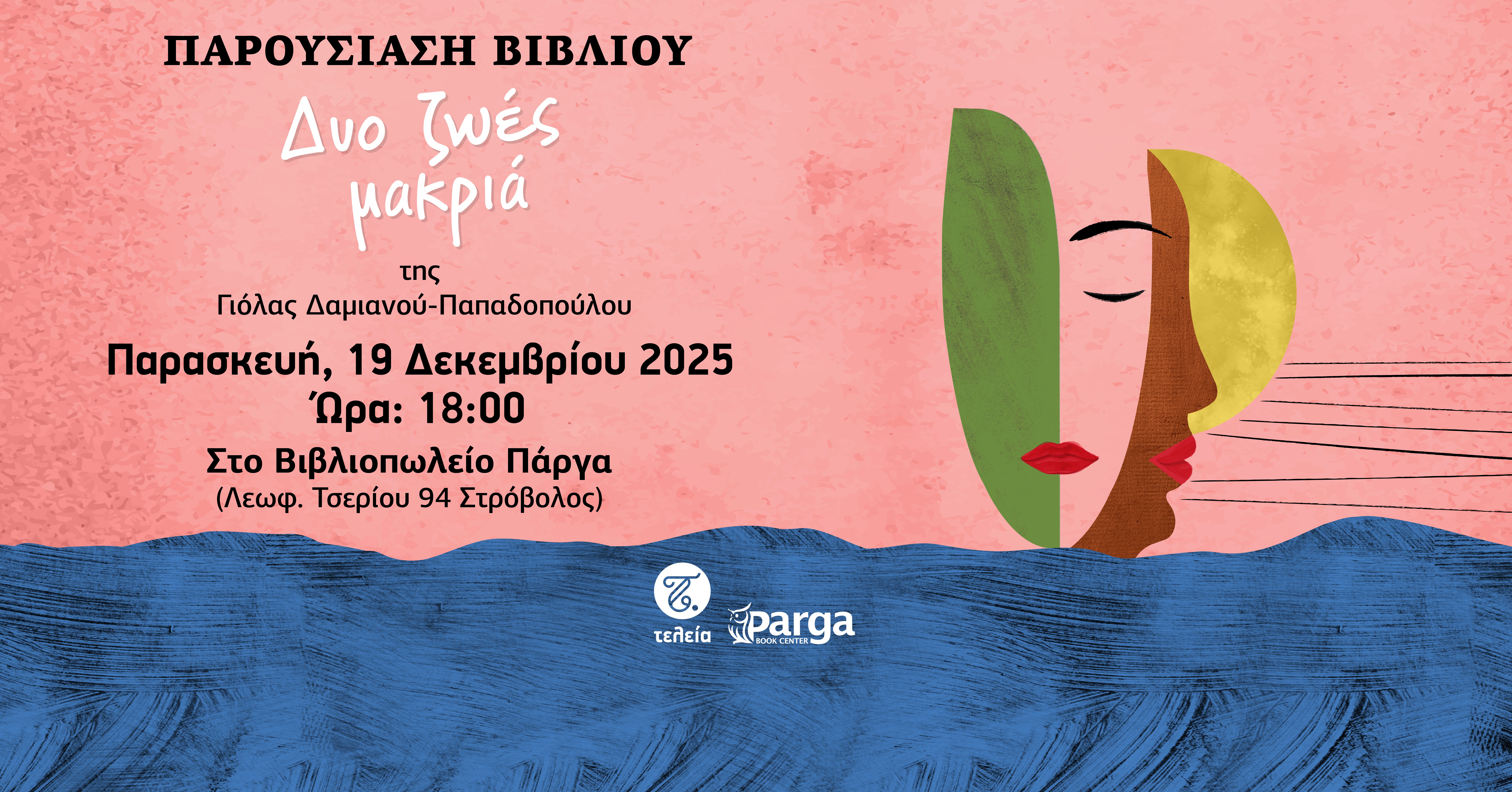 Οι Εκδόσεις Τελεία, τα Βιβλιοπωλεία Πάργα και η συγγραφέας προσκαλούν το κοινό στην παρουσίαση του βιβλίου: