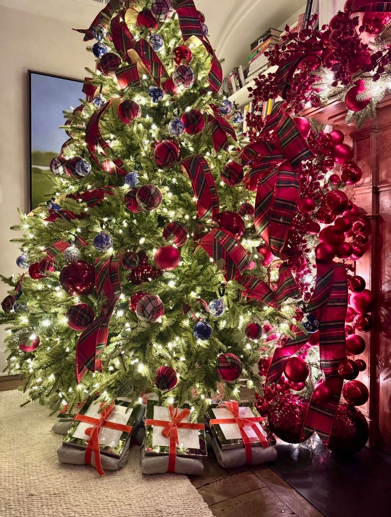 «Αυτή η χρονιά ήταν τόσο γεμάτη, και για μένα το τελετουργικό της διακόσμησης είναι μια στιγμή για να γειωθώ και να δημιουργήσω κάτι χαρούμενο. Είναι ο τρόπος μου να υποδέχομαι την εποχή με ευγνωμοσύνη. Ήθελα το δέντρο να θυμίζει τις γιορτές με τις οποίες μεγάλωσα, γεμάτες υφές και λίγη θεατρικότητα. Οι καρό κορδέλες, τα κόκκινα στολίδια και η λάμψη των φώτων μου θυμίζουν τη θαλπωρή των οικογενειακών συγκεντρώσεων και τη μαγεία που έρχεται όταν επιβραδύνεις τον ρυθμό.»
