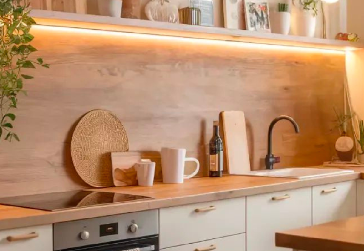 Ο φωτισμός είναι επίσης καθοριστικός. Αντικαταστήστε τις πολύ «βαριές» λάμπες με πιο ζεστό, φυσικό φως ή προσθέστε μικρά φωτιστικά κάτω από τα ντουλάπια. Η σωστή φωτεινότητα κάνει τον χώρο να δείχνει μεγαλύτερος, πιο καθαρός και πιο φιλόξενος.