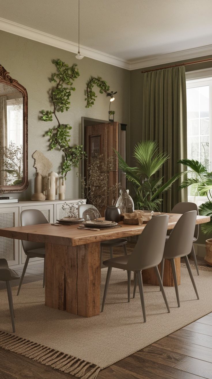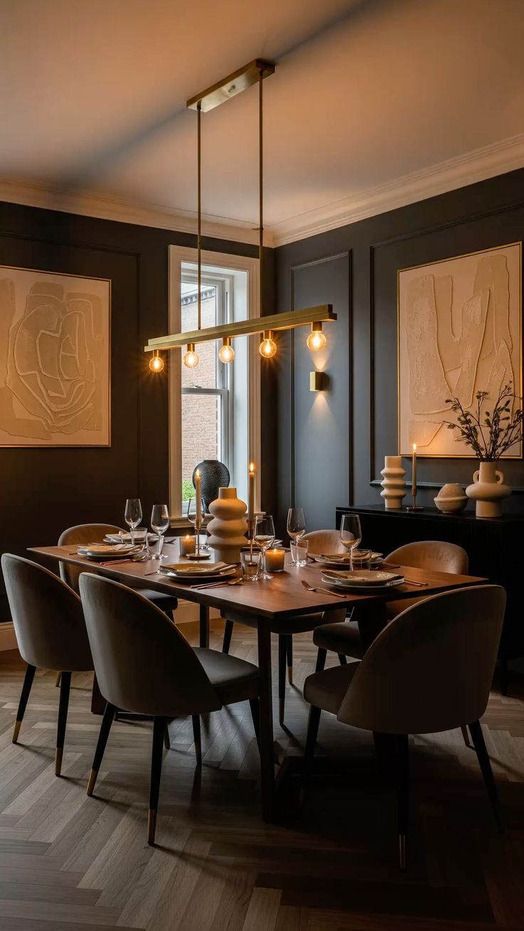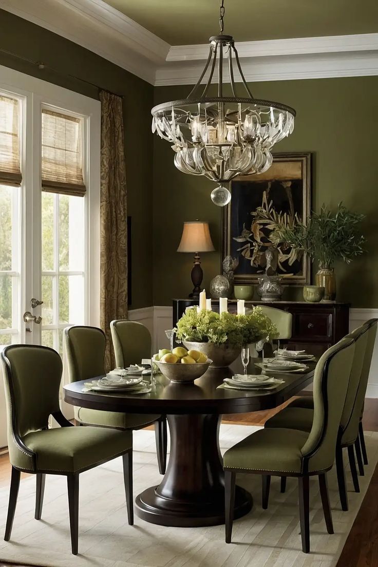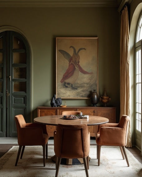 Παλιά, η τραπεζαρία ήταν συχνά ουδέτερη για να «μην κουράζει». Τώρα, γίνεται σκηνικό εμπειρίας. Οι σχεδιαστές επενδύουν σε πολυεπίπεδες παλέτες, όπου οι αποχρώσεις χτίζονται σε βάθος.