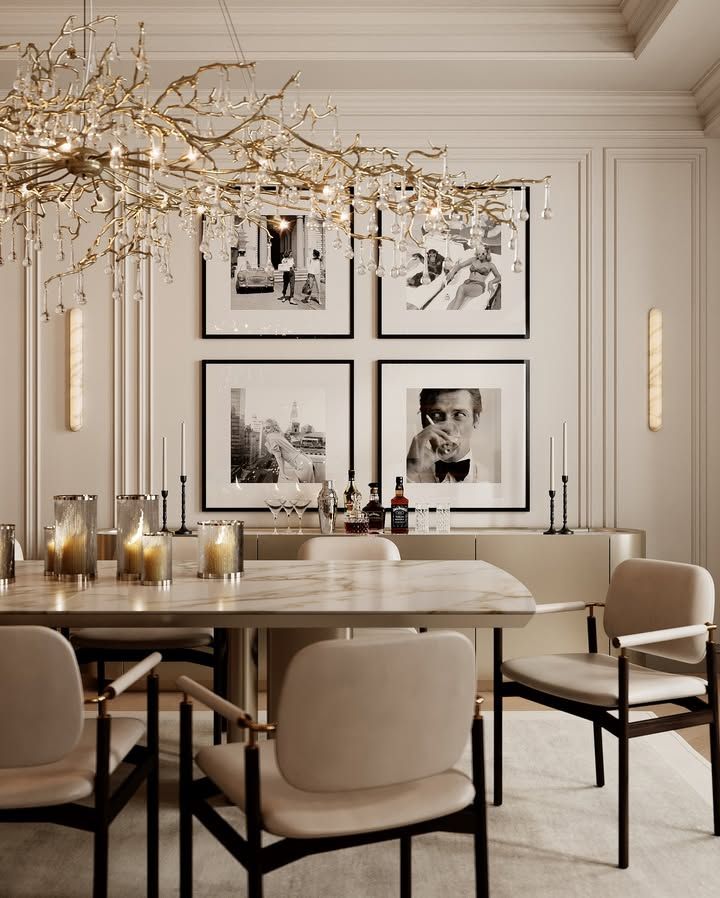 Η τραπεζαρία του 2026 δεν είναι χώρος «επίδειξης». Είναι χώρος σχέσεων, τα καλά πιάτα βγαίνουν από το ντουλάπι, τα τραπέζια γίνονται μεγαλύτερα, πιο φιλόξενα, οι καρέκλες είναι άνετες, σχεδόν lounge και ο φωτισμός γίνεται ατμοσφαιρικός και χαμηλός, με έμφαση σε κρεμαστά φωτιστικά statement.