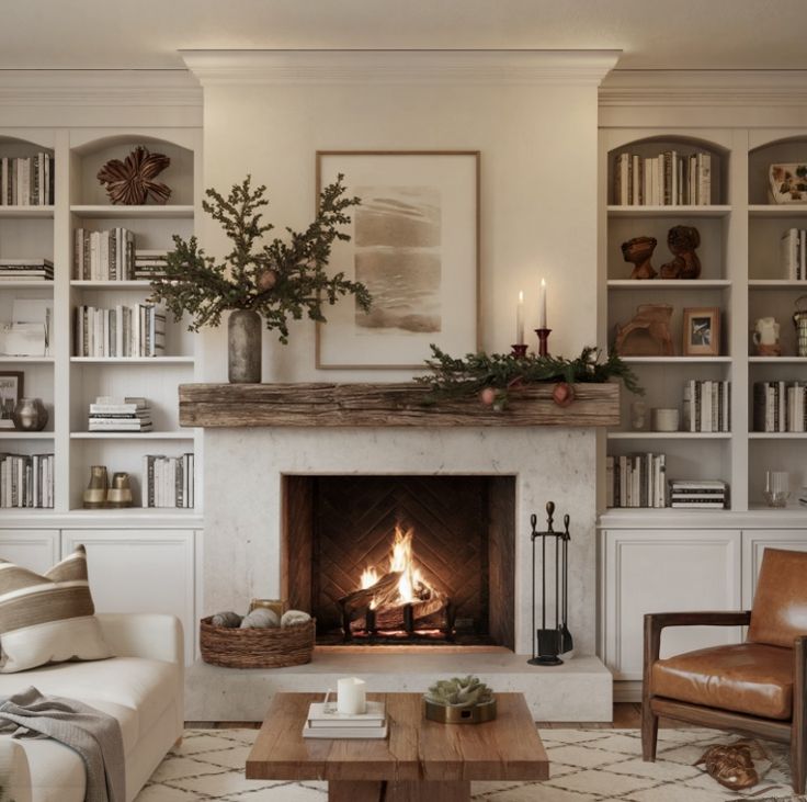 Καθώς πλησιάζουν οι γιορτές, το τζάκι αποκτά και χριστουγεννιάτικη διάσταση. Minimal γιρλάντες από φύλλα ευκάλυπτου, διακριτικά fairy lights, χρυσές λεπτομέρειες και μικρά στολίδια που δεν «φωνάζουν» αλλά φωτίζουν τον χώρο με διακριτικό λάμψη, δημιουργούν ένα updated, κομψό festive mood χωρίς υπερβολές. Είναι η νέα φιλοσοφία του holiday deco, less glitter, more glow.