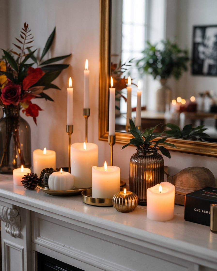 Ένα από τα μεγαλύτερα trends, όμως, είναι το layering του φωτός. Τα κεριά σε διαφορετικά ύψη, μεγέθη και υφές διαμορφώνουν ένα απόλυτα cozy mood, ειδικά τα βράδια. Τα pillar candles, τα LED candles για ασφαλή χρήση αλλά και τα lantern-style lights σε υλικά όπως bamboo ή cane, δημιουργούν μια ζεστή «φωτεινή αγκαλιά» γύρω από το τζάκι, ακόμη και όταν αυτό δεν είναι αναμμένο. Το παιχνίδι του φωτός, σε συνδυασμό με τις φυσικές υφές, είναι το συστατικό που κάνει τον χώρο να φαίνεται πιο ζωντανός και ατμοσφαιρικός.