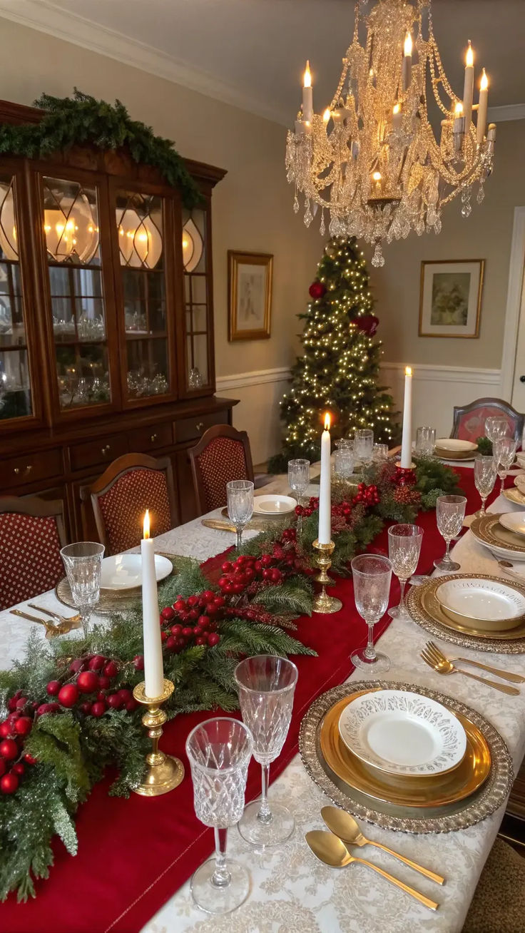 Η τραπεζαρία είναι το επίκεντρο των γιορτινών τραπεζιών, γι’ αυτό αξίζει μια εντυπωσιακή χριστουγεννιάτικη νότα. Ξεκίνα με ένα festive runner ή ένα κομψό τραπεζομάντιλο σε κόκκινους, χρυσούς ή natural τόνους. Δημιούργησε ένα centerpiece με κεριά, eucalyptus, berries και κουκουνάρια για πιο φυσικό αποτέλεσμα. Πρόσθεσε elegant σετ πιάτων, ποτηριών και linen πετσέτες δεμένες με χριστουγεννιάτικες κορδέλες ή μικρά στολίδια. Για extra glam, μπορείς να διακοσμήσεις τις καρέκλες με μικρά wreaths ή satin bows. Το τραπέζι σου θα φαίνεται έτοιμο για περιοδικό.