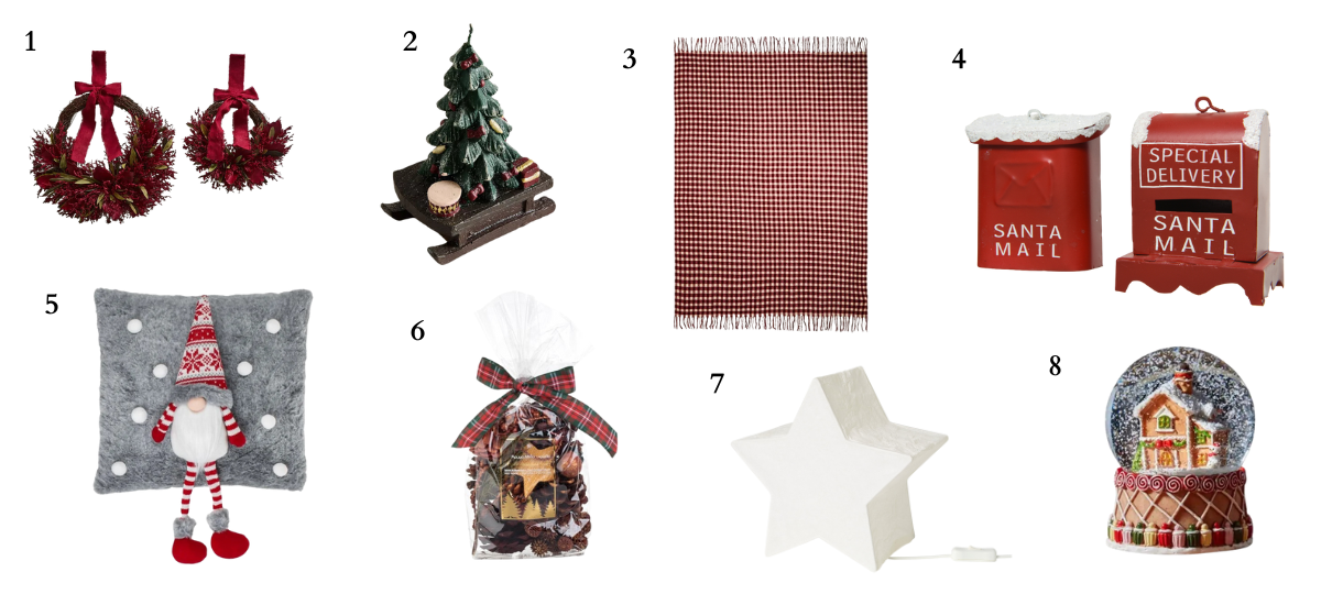 Για το σαλόνι, που αποτελεί το επίκεντρο της γιορτινής ατμόσφαιρας, τα διακοσμητικά που επιλέξαμε συνδυάζουν υπέροχα τη ζεστασιά, το άρωμα και τη χριστουγεννιάτικη λάμψη. Το eucalyptus wreath δίνει έναν φυσικό, κομψό τόνο στην είσοδο ή πάνω από το τζάκι, ενώ το sleigh & tree candle προσθέτει μια γλυκιά, φωτεινή πινελιά σε τραπεζάκια και ράφια. Η soft gingham κουβέρτα και το μαξιλάρι gnome δημιουργούν αμέσως ένα cozy, ζεστό σκηνικό για χαλάρωση, με το pot-pourri μήλο–κανέλα να γεμίζει τον χώρο με το απόλυτο άρωμα Χριστουγέννων. Το STRÅLA LED αστέρι, η χαριτωμένη gingerbread γυάλινη σφαίρα και το παιχνιδιάρικο Xmas mailbox ολοκληρώνουν άψογα τη festive εικόνα, φέρνοντας μια γλυκιά, παραμυθένια διάθεση στο σαλόνι σου.