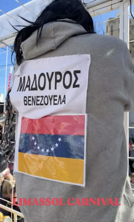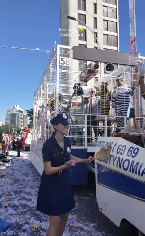 Στην πρώτη γραμμή του άρματος βρέθηκε η Άννα Αριστοτέλους, μεταμορφωμένη σε αστυνομικό, κρατώντας πλάκατ που έγραφαν «Η Δικαιοσύνη στα καλύτερά της και από πίσω - Η καλύτερη». Στο πλευρό της περπατούσε ο Nicolás Maduro, σε έναν σατιρικό ρόλο «προσκεκλημένου», προσθέτοντας μία ακόμα δόση ειρωνείας στην εικόνα.