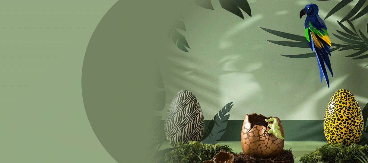 Μοναδικά στο είδος τους σοκολατένια αβγά, ζωγραφισμένα με σχέδια που μας παραπέμπουν στη ζούγκλα, δημιουργήσαν οι δύο αδελφές του Yolanda's Chocolatiers, Αίγλη Σταματίου και η Άννα Ισαβέλα Σταματίου.