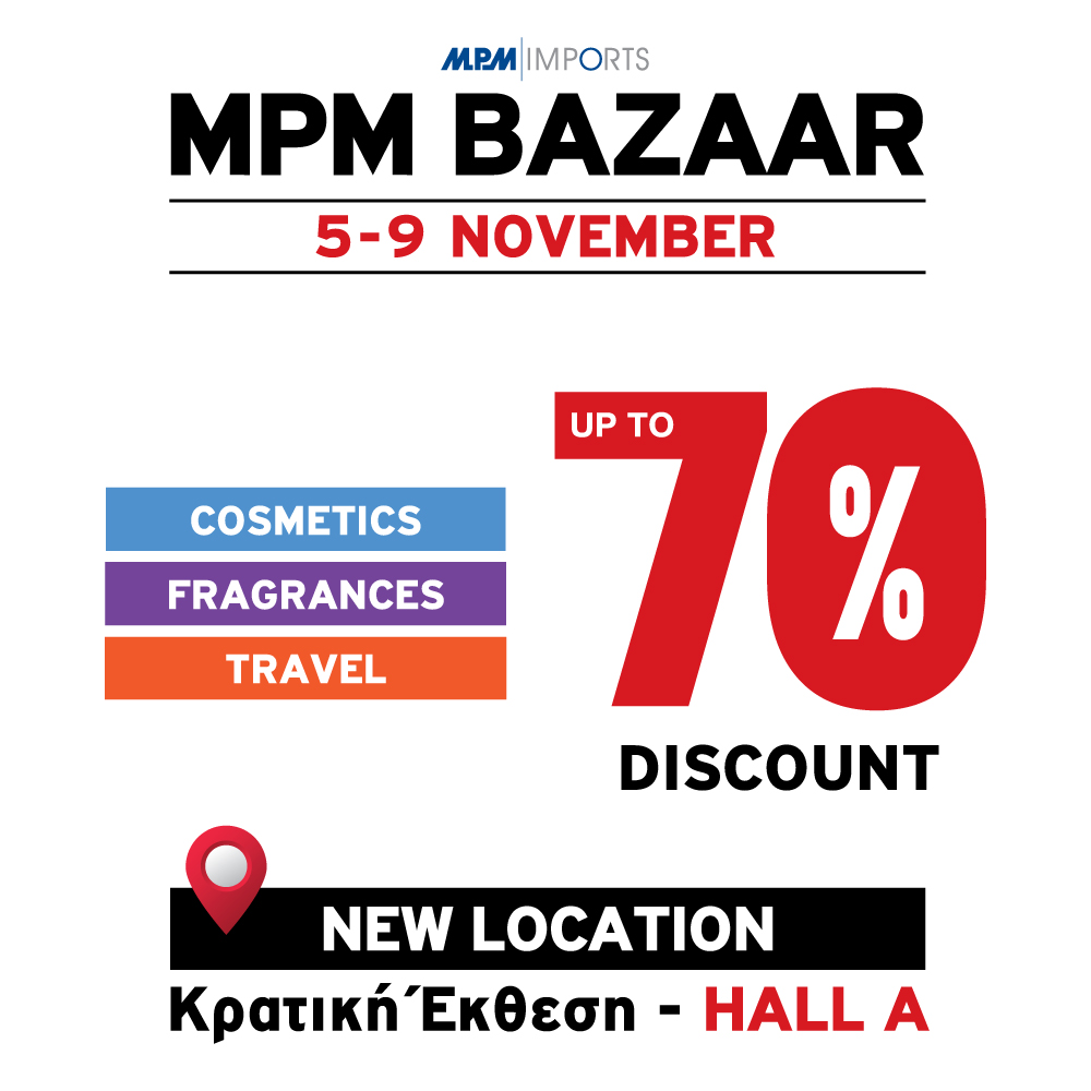 Το MPM Bazaar, το αγαπημένο γεγονός αγορών για το κοινό της Κύπρου, επιστρέφει για μια ακόμη χρονιά και υπόσχεται να εντυπωσιάσει! Η εταιρία MPM Imports, η διοργανώτρια εταιρεία του MPM Bazaar, ανακοινώνει ότι φέτος η εκδήλωση θα διεξαχθεί σε νέα τοποθεσία, και συγκεκριμένα στην Κρατική Έκθεση στην Έγκωμη, Λευκωσία.