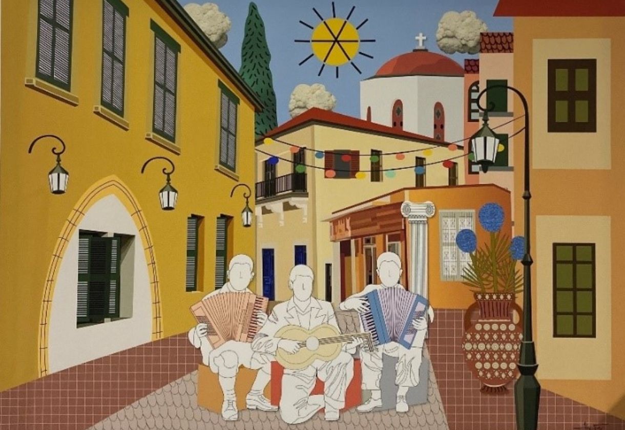 Αντωνία Ηρωίδου, The Musicians, 90 × 122 εκ. Εκτύπωση σε καμβά.