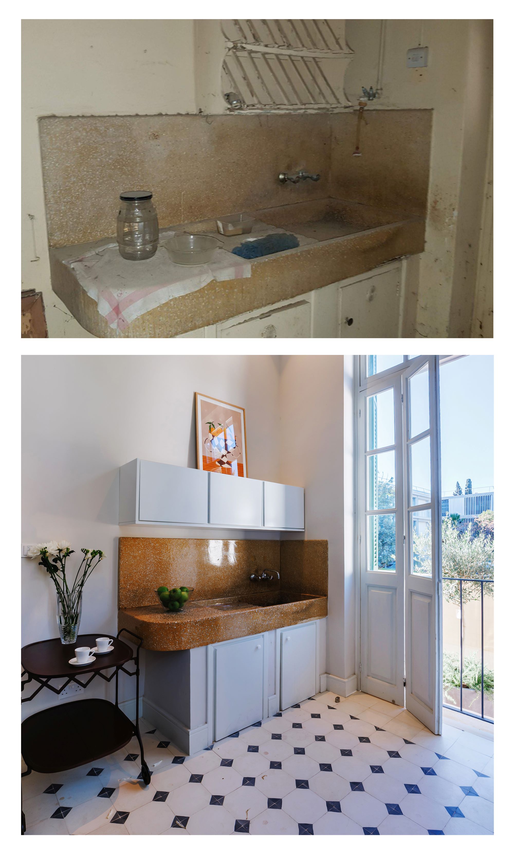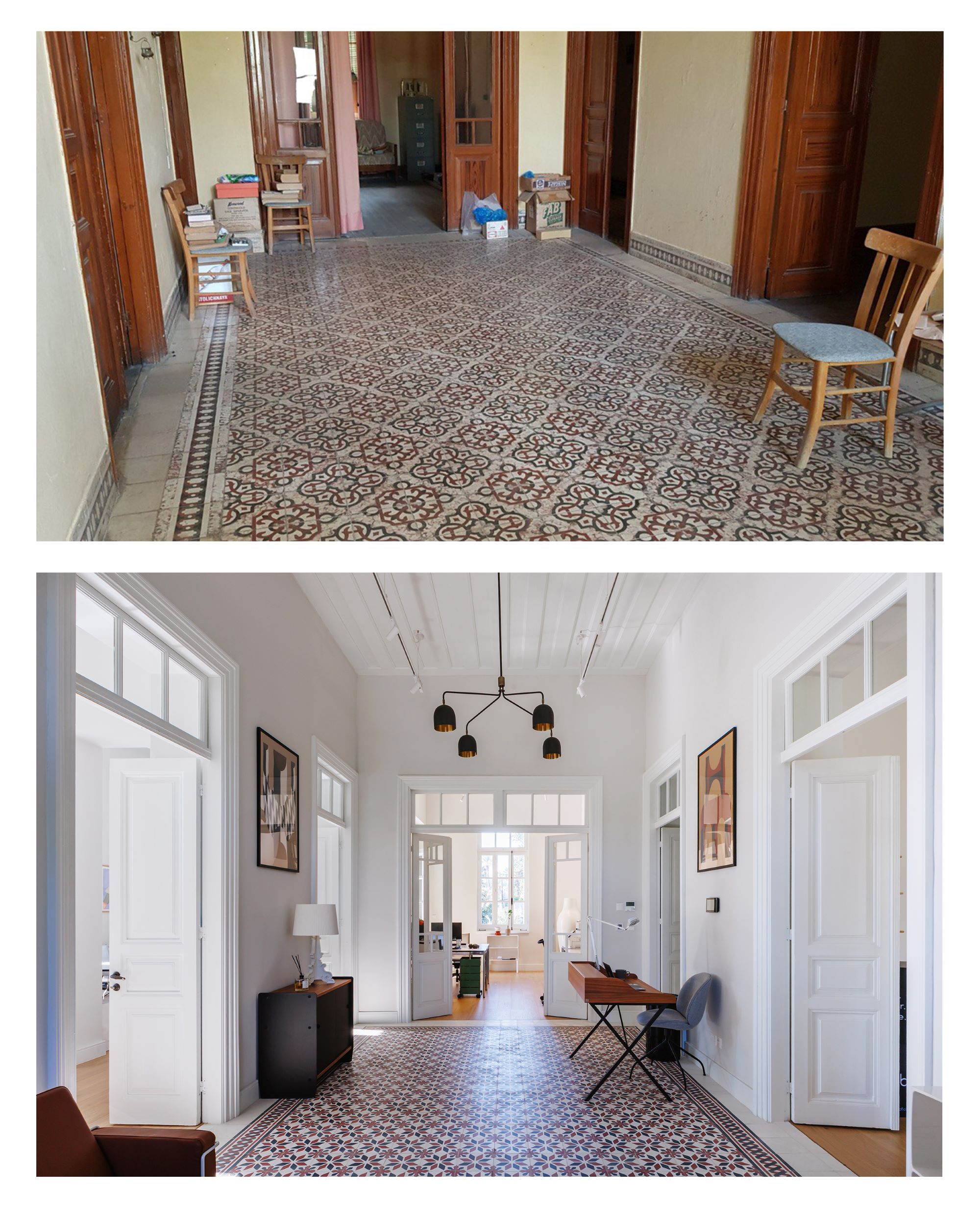 Παρά τις επεμβάσεις, η δομή του κτηρίου παρέμεινε ίδια. Μόνο ένας εσωτερικός τοίχος αφαιρέθηκε· τα υπόλοιπα δωμάτια είναι όπως πριν από εκατό χρόνια. Η κουζίνα παραμένει στον αρχικό της χώρο, ενώ το βοηθητικό κουζινάκι και η αποθήκη στο υπόγειο διαφυλάχθηκαν — μαζί με τα πυθάρια και τα παλιά μπουκάλια που βρέθηκαν όταν ο αρχιτέκτονας μπήκε για πρώτη φορά στο σπίτι.