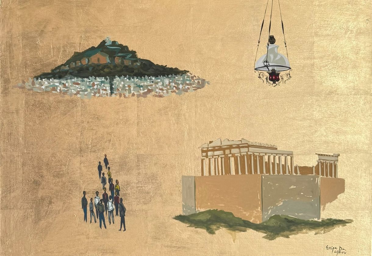 ΣΠΥΡΟΣ ΒΑΣΙΛΕΙΟΥ, Ακρυλικό με χρυσό σε καμβά, (συνοδεύετε με γκαραντί), 80 X 100 εκ.