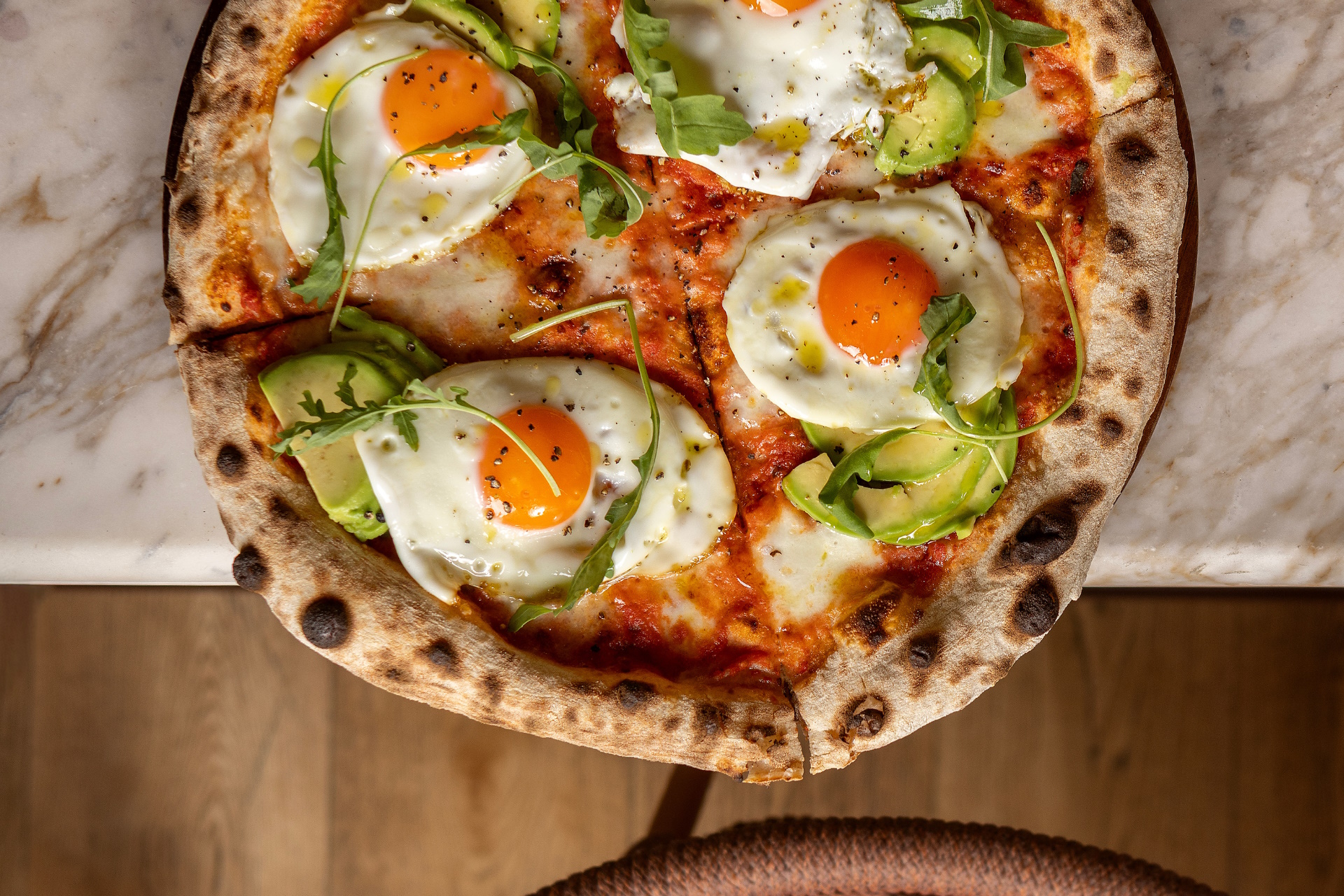 Το μενού συνεχίζεται με τα αγαπημένα eggs benedict, προσαρμοσμένα με πρωτότυπα toppings που ισορροπούν τέλεια τις γεύσεις – και για όσους θέλουν να δοκιμάσουν κάτι διαφορετικό, η πίτσα με ζύμη 48ωρης ωρίμανσης, εμπλουτισμένη με τηγανητά αυγά και αβοκάντο, αποτελεί ένα ιδιαίτερο twist!