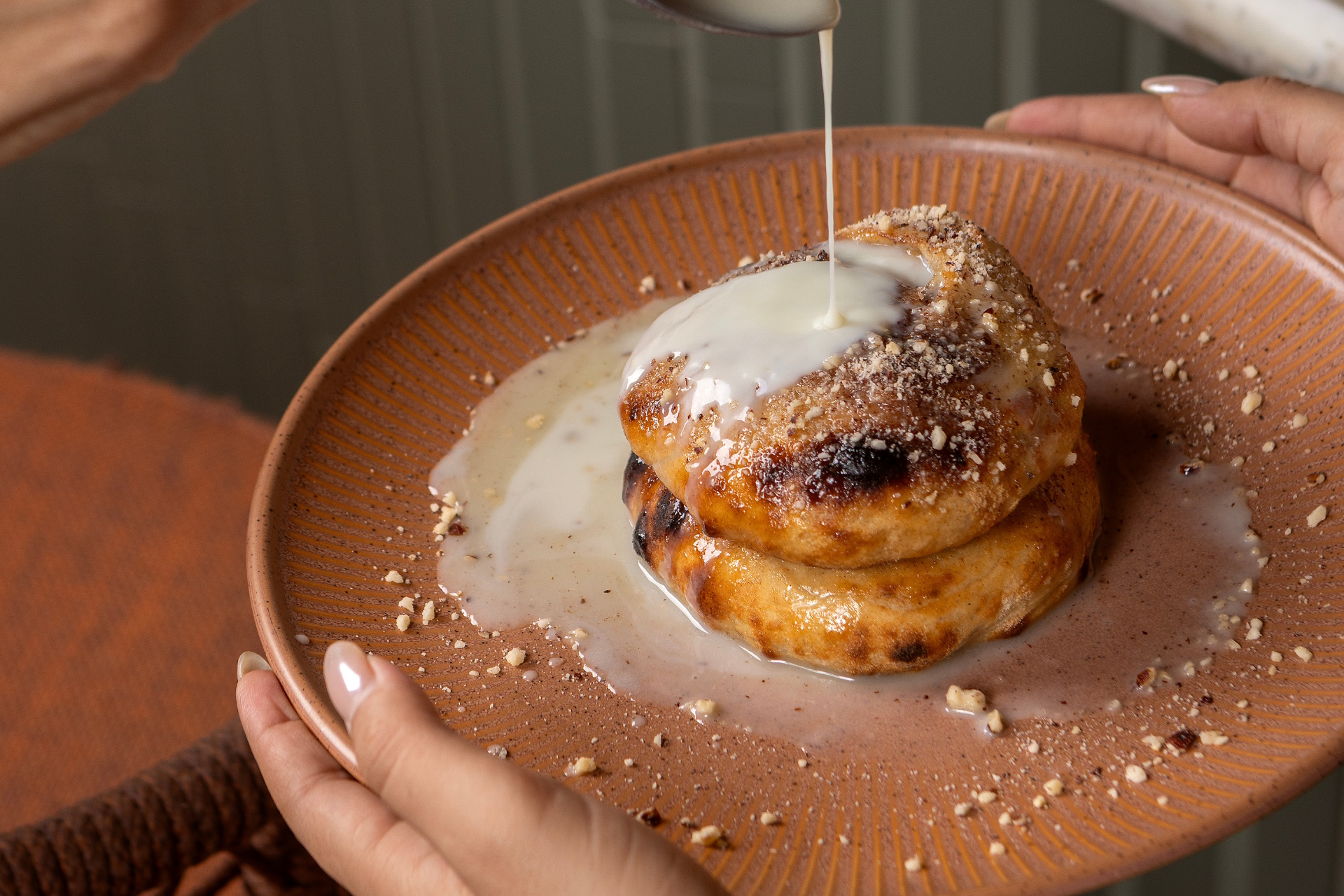 Για το τέλος, οι γλυκές απολαύσεις κλέβουν την παράσταση! Τα focaccia rolls – αφράτα ρολάκια κανέλας – έρχονται σε δύο εκδοχές: με λευκή σοκολάτα και καβουρδισμένα φουντούκια ή με πραλίνα φιστικιού Αιγίνης. Μαλακά και αρωματικά, είναι η τέλεια συντροφιά για τον πρωινό καφέ και για το φινάλε ενός brunch που μένει αξέχαστο.