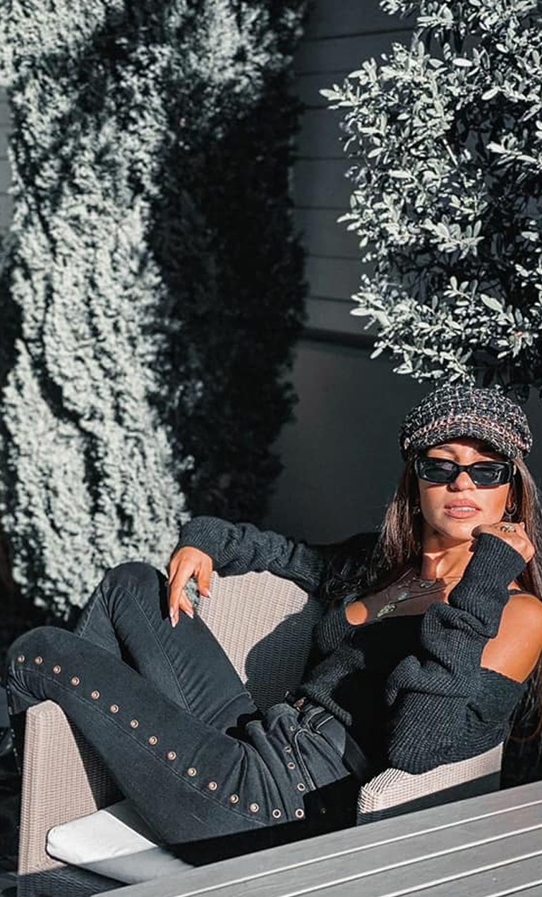 H Θέλξια επέλεξε να ποντάρει σε έναν συνδυασμό ρούχων που δεν πρόκειται ποτέ να είναι out of fashion. Το total black σύνολο είναι διαχρονικό και αποπνεέει έναν αέρα κομψότητας. Σε αυτή της την εμφάνιση αναβάθμισε το look της με chunky αθλητικά και tweed baker’s hat.