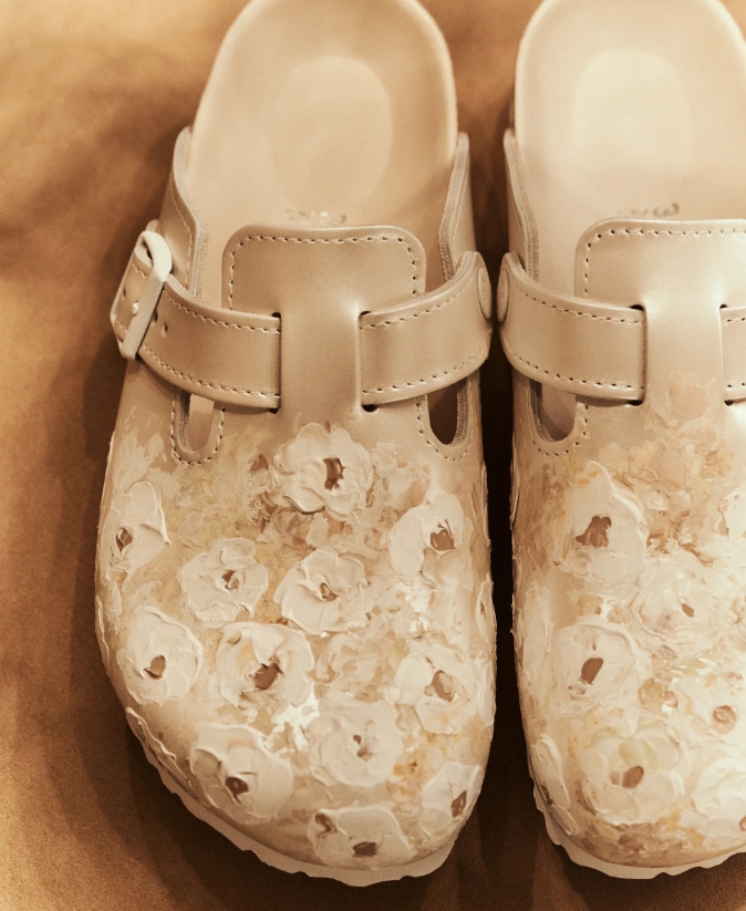 Η premium συνεργασία της bridal designer Danielle Frankel Hirsch με τη Birkenstock πήρε τα κλασικά Arizona/Madrid/Boston και άλλα και τα «έντυσε» με bridal λεπτομέρειες όπως σατέν, πέρλες, λουλούδια από σιφόν, χειροποίητες πινελιές και custom επιλογές, σε μια συλλογή 6 σχεδίων που λανσάρεται στις 12 Φεβρουαρίου 2026.