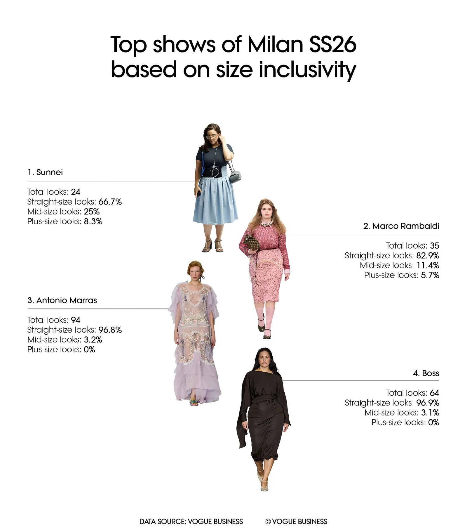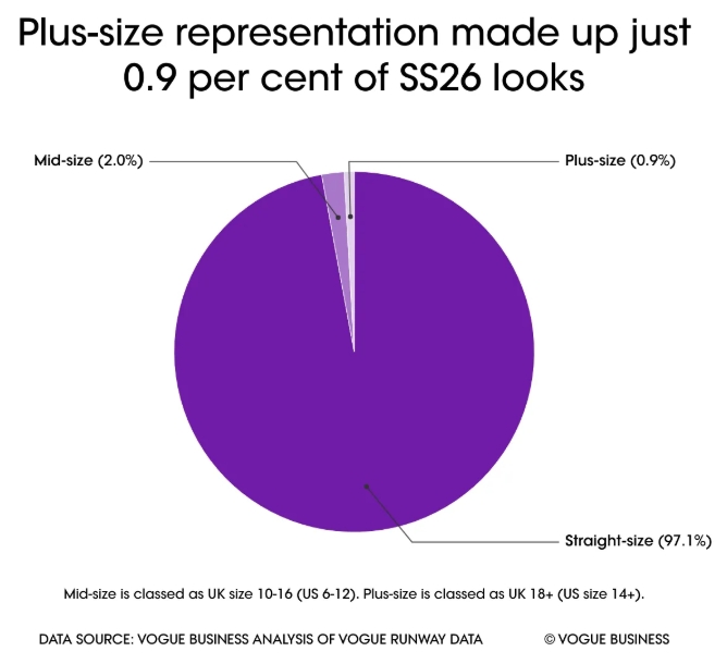 Παρά τη σαφή ζήτηση από καταναλωτές και insiders, η σεζόν Άνοιξη/Καλοκαίρι 2026 παρουσίασε μόνο ολίγιστη βελτίωση στην ένταξη μεγεθών. Σε 198 επιδείξεις/παρουσιάσεις και 9.038 looks, η εικόνα ήταν ξεκάθαρη: