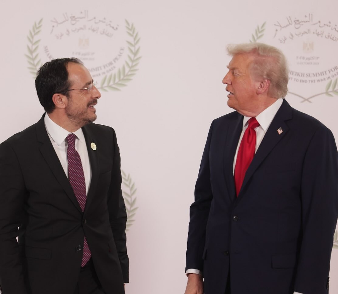 Στο περιθώριο της Συνόδου για τη Γάζα, ο Πρόεδρος της Κυπριακής Δημοκρατίας, Νίκος Χριστοδουλίδης, είχε σύντομο τετ α τετ με τον Πρόεδρο των ΗΠΑ, Ντόναλντ Τραμπ, όπου συζήτησαν το Κυπριακό. Ο κ. Χριστοδουλίδης επισήμανε ότι οποιαδήποτε βοήθεια από τις ΗΠΑ ή άλλες χώρες είναι καλοδεχούμενη.