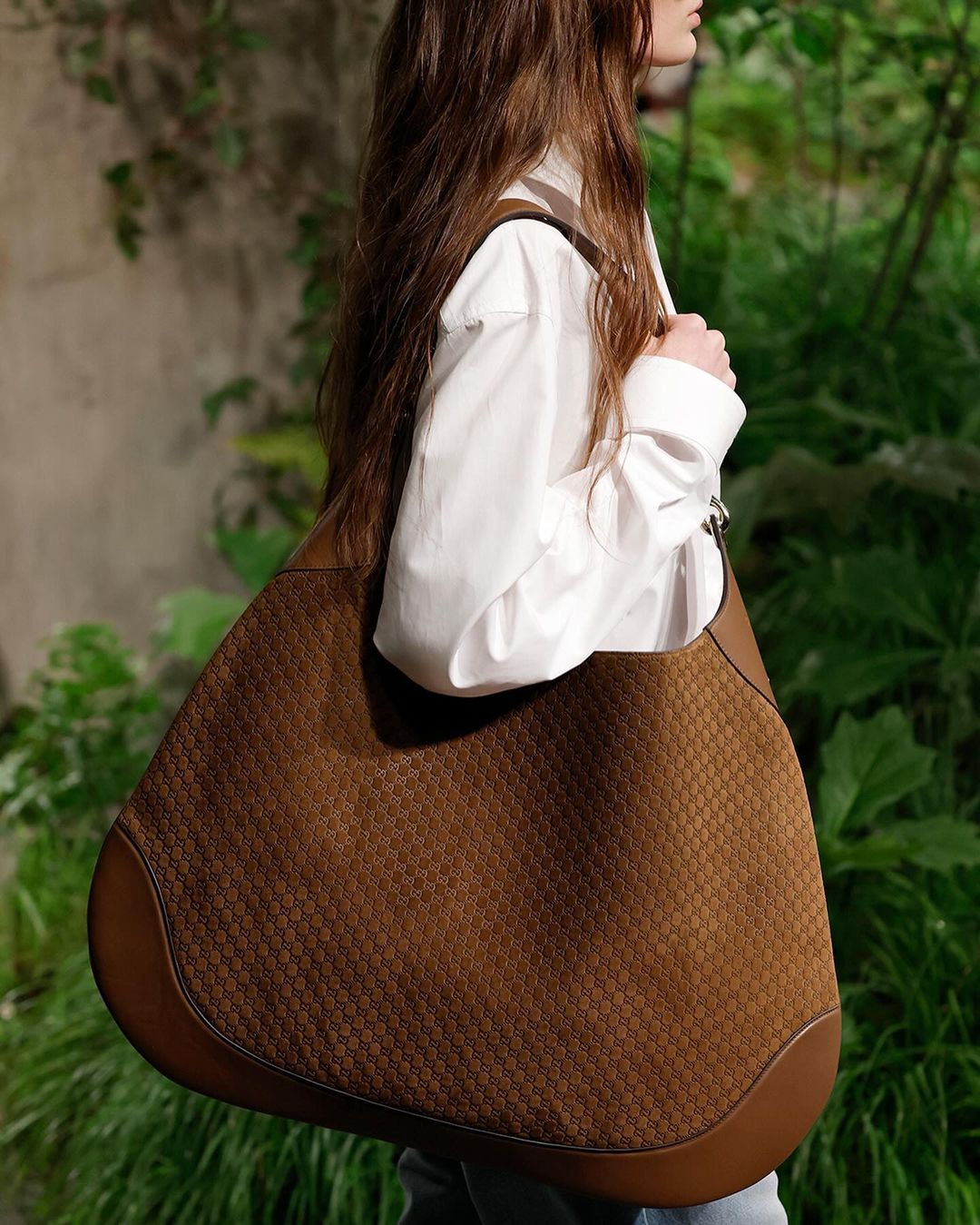 Ο πολυτελής ιταλικός οίκος μόδας παρουσίασε μια ποικιλία από λεπτεπίλεπτα διάφανα ρούχα, χαλαρά jean παντελόνια και casual streetwear κομμάτια. Πολλά μοντέλα κρατούσαν επίσης ταιριαστές δερμάτινες τσάντες με το διάσημο λογότυπο του διπλού G της επωνυμίας να τις διακοσμεί.