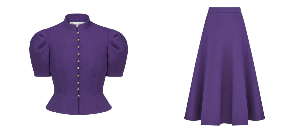 Ενδιαφέρον παρουσιάζει το γεγονός ότι το ακριβές ίδιο σετ από τη συλλογή FW24 του Dior διατίθεται και σε μωβ απόχρωση με κουμπιά Dior Tribales, που αναδεικνύουν το μαργαριτάρι ρητίνης CD εμπνευσμένο από το εμβληματικό σκουλαρίκι του Οίκου. Μάλιστα, ανακαλύψαμε το ακριβές σετ της Αννίτας online σε budget-friendly εκδοχή στη σελίδα loveideaet στην τιμή των €38.18, προσφέροντας έτσι μια προσιτή εναλλακτική για όσες θέλουν να υιοθετήσουν το chic look της Αννίτας χωρίς να ξοδέψουν μια περιουσία, βέβαια, σε μωβ απόχρωση αντί μαύρη.