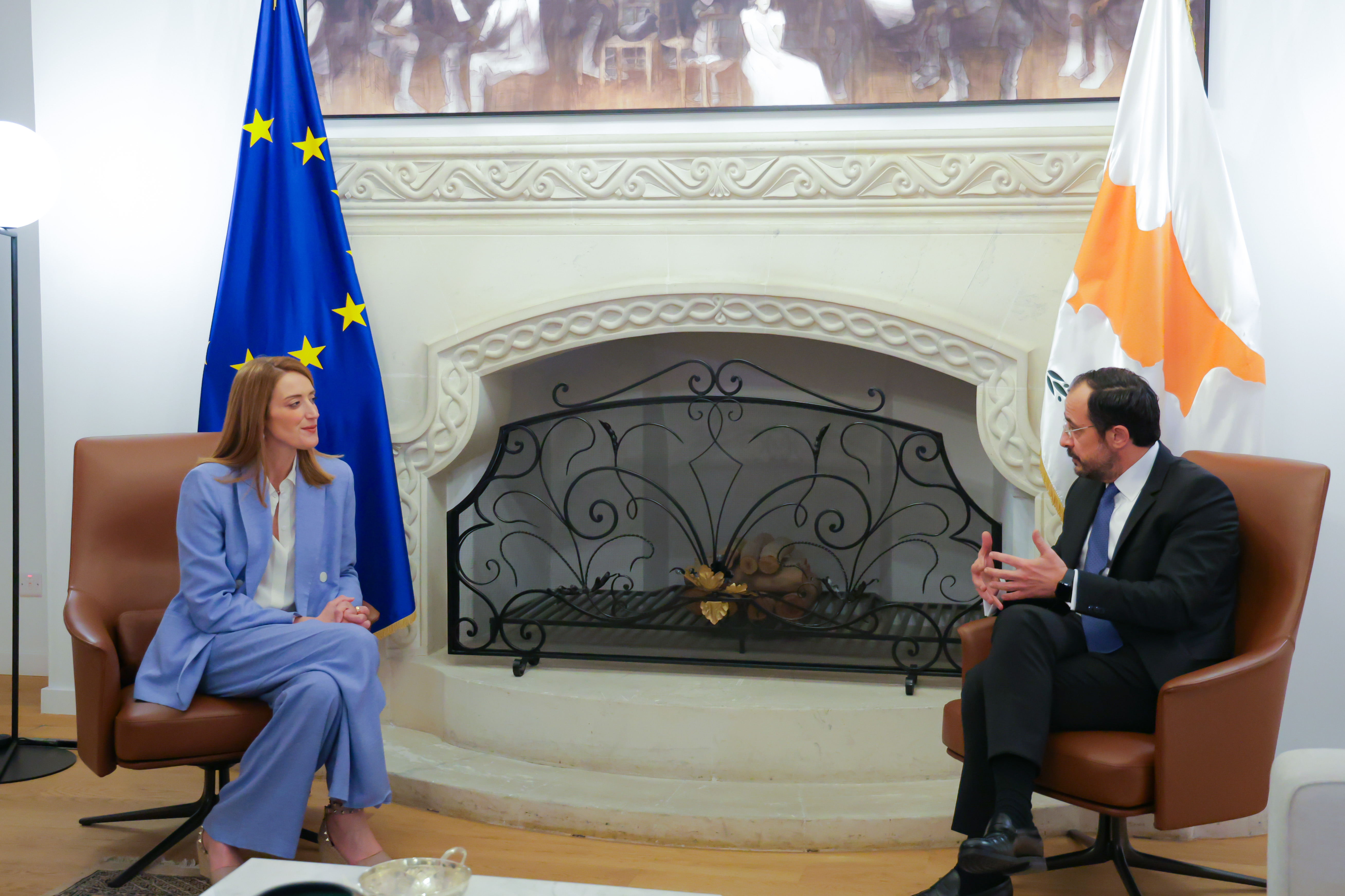 Στην Κύπρο βρέθηκε η Πρόεδρος του Ευρωπαϊκού Κοινοβουλίου, Ρομπέρτα Μέτσολα, συνοδευόμενη από τους Προέδρους των Πολιτικών Ομάδων του Ευρωκοινοβουλίου, στο πλαίσιο της διήμερης επίσκεψης της Διάσκεψης των Προέδρων ενόψει της επικείμενης Κυπριακής Προεδρίας του Συμβουλίου της ΕΕ.
