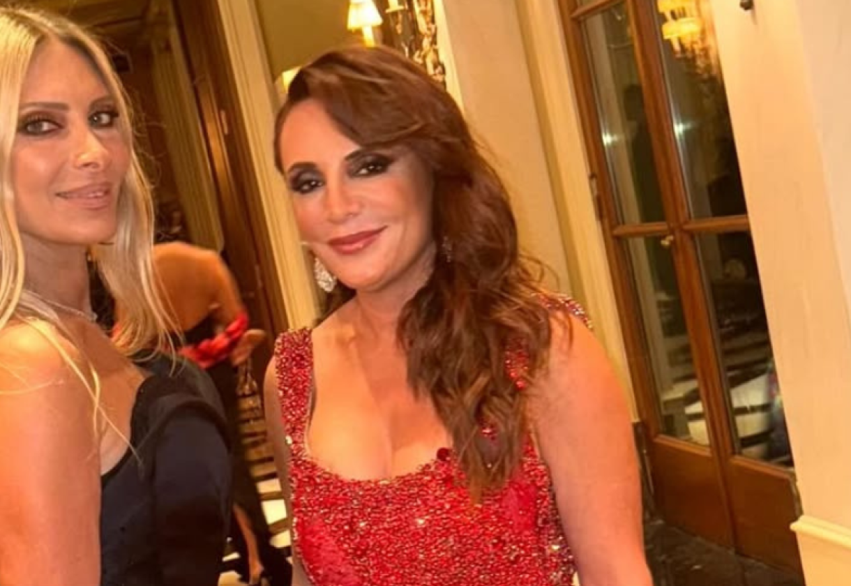 Στη συνέχεια, για τη δεξίωση και το λαμπερό γαμήλιο πάρτι, άλλαξε σε ένα εντυπωσιακό κόκκινο φόρεμα με κεντημένες παγιέτες και κρυστάλλους, μια επιλογή που συνδύαζε την αίγλη με την εκλεπτυσμένη αισθητική. Το outfit ολοκληρώθηκε με ένα clutch στην ίδια απόχρωση, αποπνέοντας λάμψη και φινέτσα.