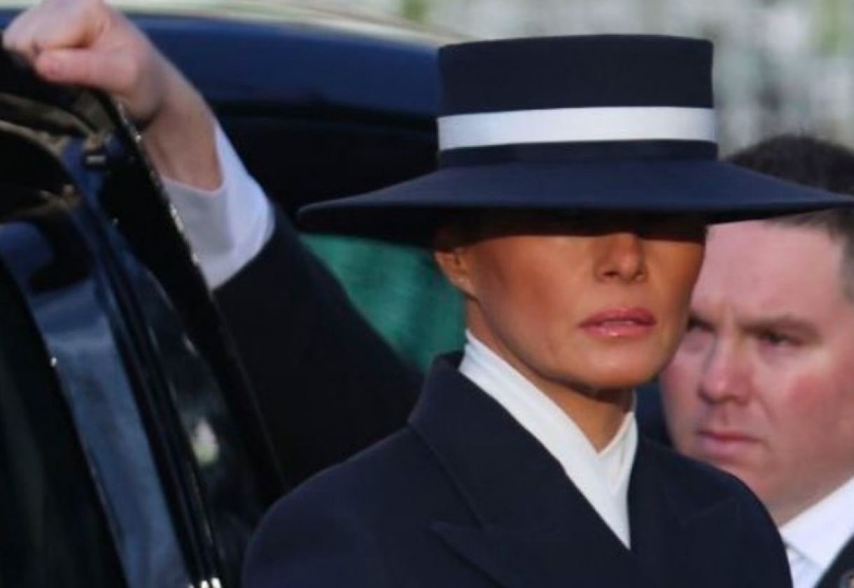 Η Melania εμφανίστηκε με ένα μπλε καπέλο με λευκή κορδέλα του Αμερικανού σχεδιαστή Eric Javits, ένα σκούρο μπλε παλτό σε στενή γραμμή του σχεδιαστή Adam Lippes και μαύρα δερμάτινα γάντια, δημιουργώντας μια εμφάνιση που θύμιζε έντονα το εμβληματικό στυλ του «Smooth Criminal» video clip του Michael Jackson, όπως σχολίασαν χρήστες στα social media κάνοντας την εμφάνισή της viral. Το φαρδύ γείσο και η αντίθεση μεταξύ της λευκής κορδέλας και του μπλε καπέλου τράβηξαν όλα τα βλέμματα, δίνοντας στην εμφάνισή της μια εντυπωσιακή αίσθηση μυστηρίου και κομψότητας.