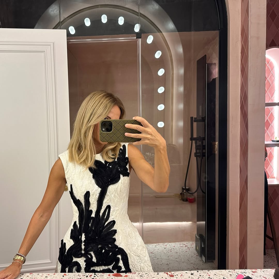 Το συνδύασε με διαχρονικά, μινιμαλιστικά κοσμήματα, όπως ένα κομψό ρολόι και διακριτικά βραχιόλια, δημιουργώντας έτσι ένα πιο relaxed αλλά εξίσου κομψό αποτέλεσμα. Αν και τα παπούτσια της δεν είναι εμφανή στις φωτογραφίες, το συνολικό styling παρέπεμπε σε effortless chic αισθητική.