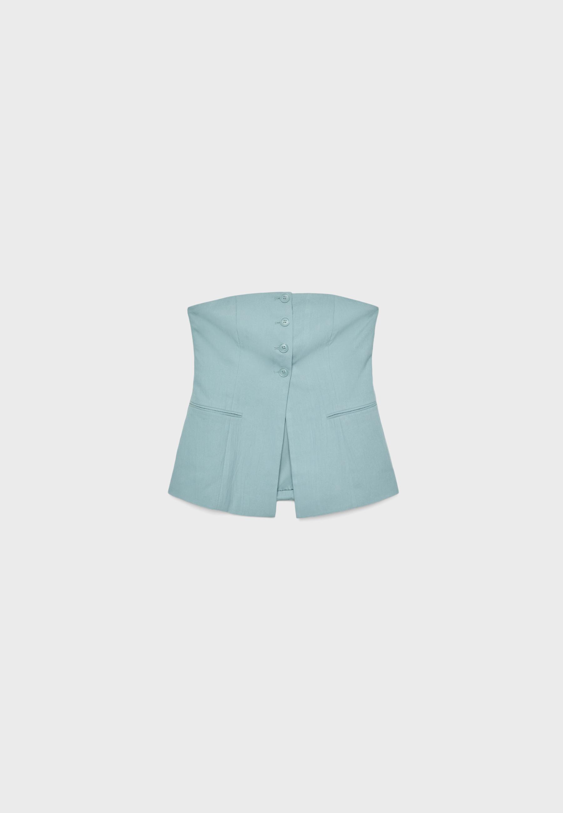 Minimal, chic και ιδανικό για ανοιξιάτικες εμφανίσεις, το strapless tailor top είναι ένα από τα πιο hot κομμάτια της σεζόν. Συνδυάζεται υπέροχα με loose παντελόνια, ψηλόμεσα σορτς ή ακόμα και πάνω από πουκάμισα για ένα πιο layered αποτέλεσμα.