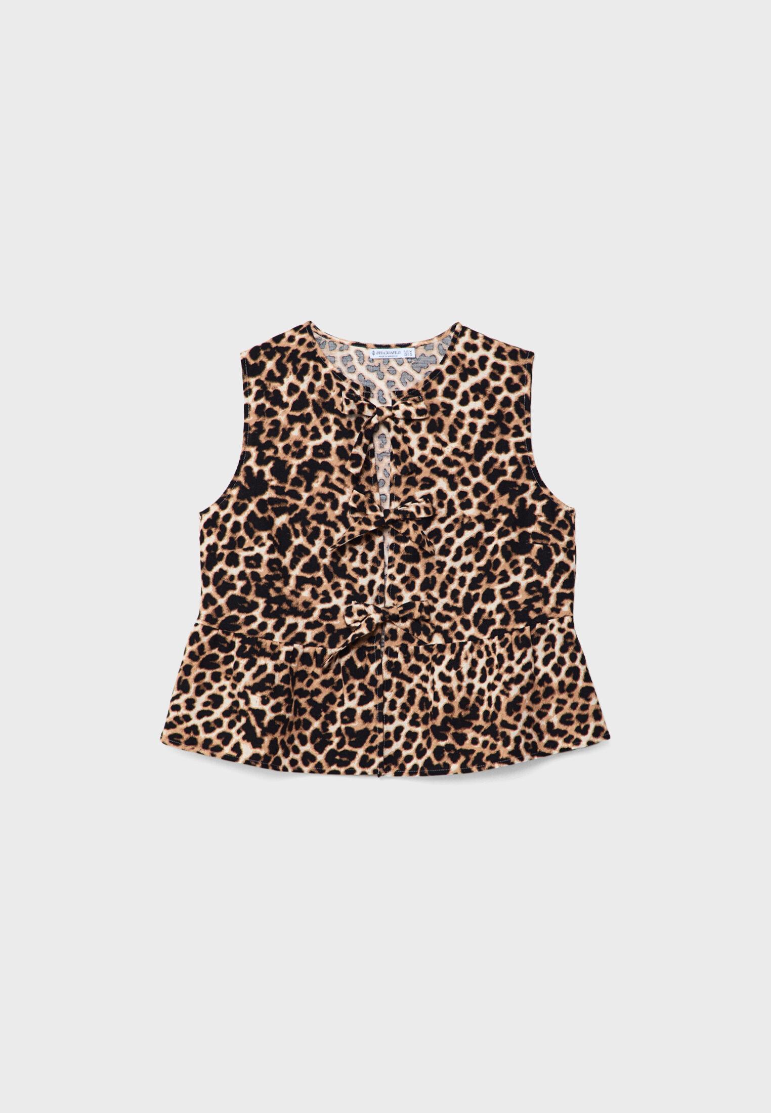 Λεοπάρ μπλουζάκι με φιόγκους από Stradivarius