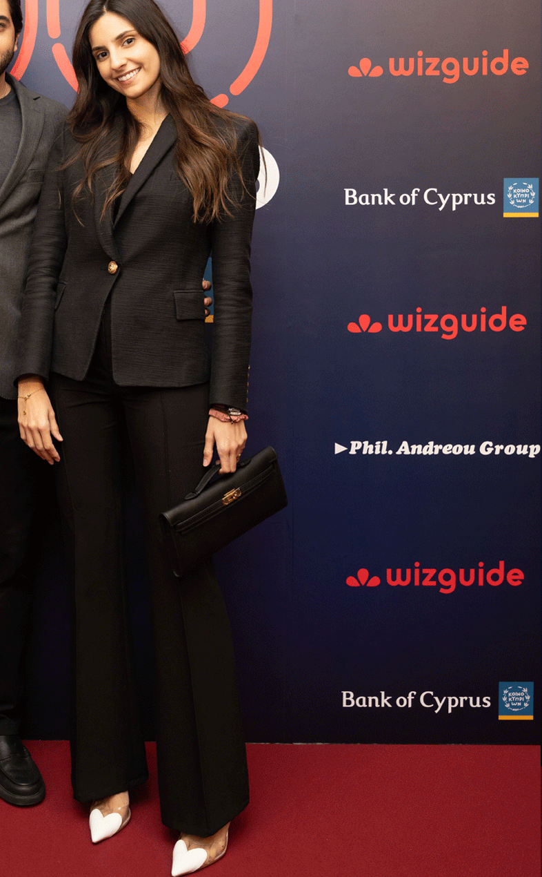 Η Αθηνά Λοιζίδου ήταν επίσης μια παρουσία στο κόκκινο χαλί που μαγνήτισε τα βλέμματα, φορώντας ένα μαύρο «αυστηρό» κοστούμι, το οποίο συνδύασε με ένα από τα πιο hot αξεσουάρ του 2024, την oversized clutch τσάντα.