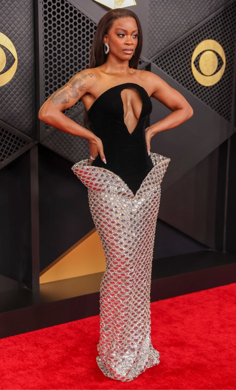 Πάντα πιστή στη δυναμική της εικόνα, η Teyana Taylor εμφανίστηκε με ένα χρυσό, γεμάτο cut-outs και παγιέτες φόρεμα, αναδεικνύοντας τη σιλουέτα της. Ένα look που ισορρόπησε ιδανικά ανάμεσα στο glam και τη δύναμη.