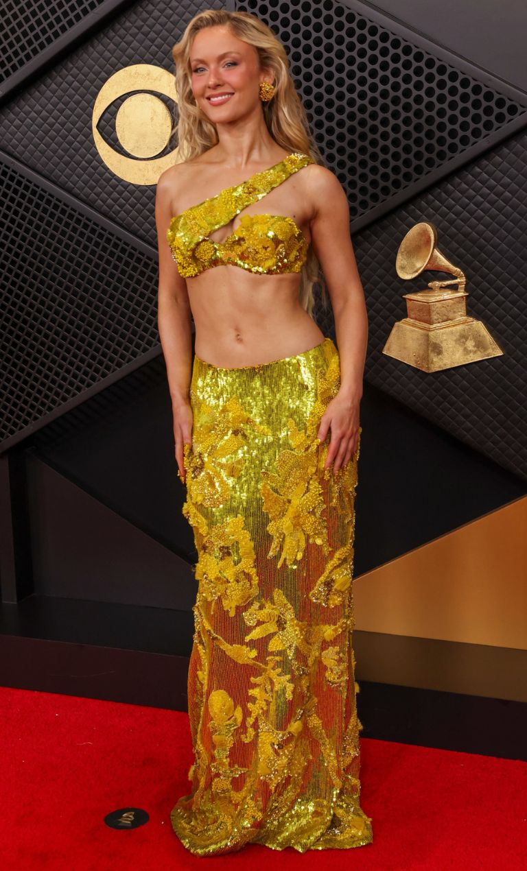 Η Tate McRae προτίμησε μια πιο sleek και μοντέρνα προσέγγιση, με ένα κομψό, tailored look που υπογράμμισε τη νέα pop αισθητική της γενιάς της.
