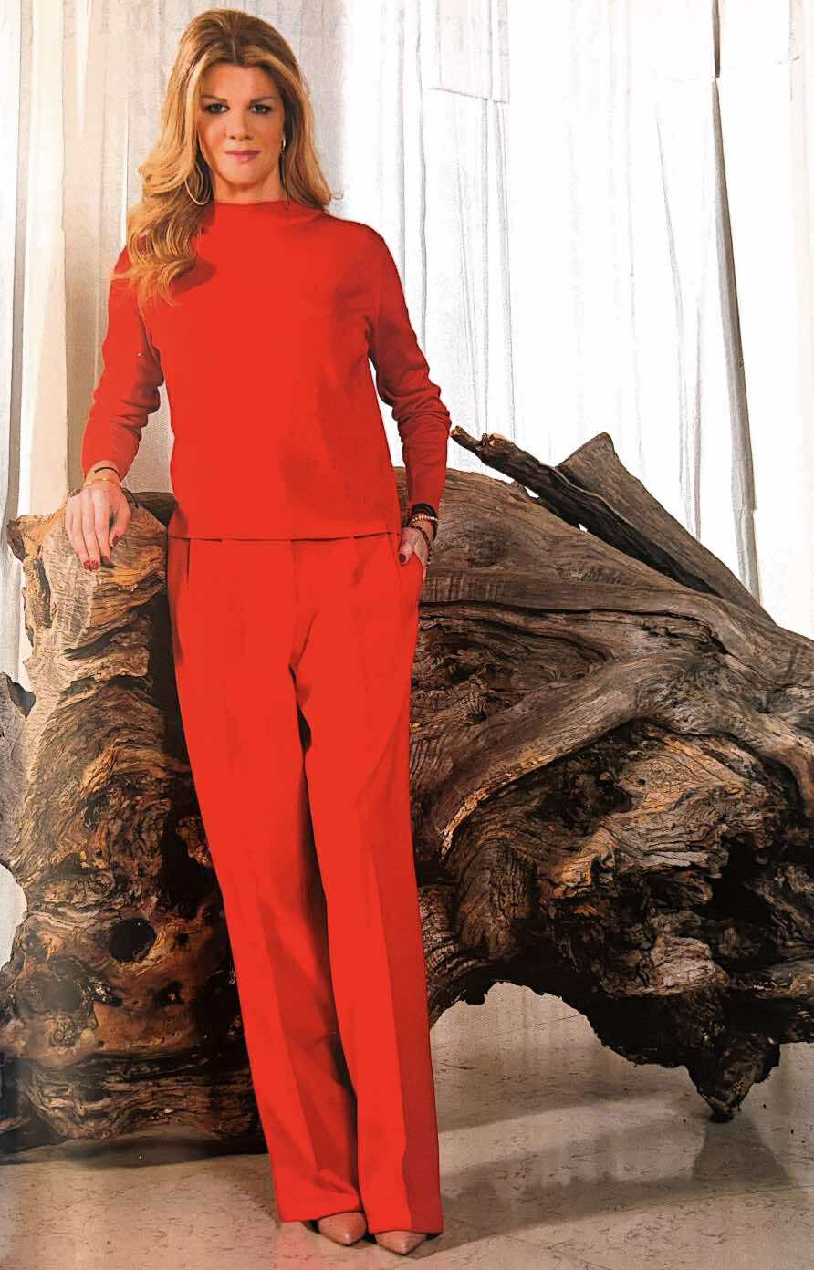 Στο δεύτερο look, η Έλσα εμφανίστηκε πιο ζωντανή και δυναμική από ποτέ. Ένα total red σύνολο από MAX MARA, με πλεκτό top και tailored παντελόνι, συνδυασμένο με μπεζ γόβες. Η επιλογή του κόκκινου, ενός χρώματος που αποπνέει αυτοπεποίθηση και θηλυκή ενέργεια, έδειξε μια πιο εξωστρεφή πλευρά της. Οι χρυσοί κρίκοι που ολοκλήρωναν το look, πρόσθεταν μια πινελιά λάμψης χωρίς να αφαιρούν από τη φυσικότητα της εικόνας της.