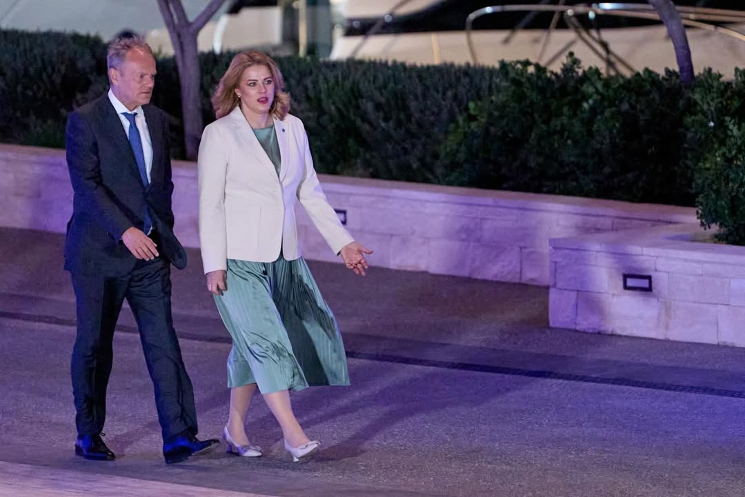 Η Πρωθυπουργός της Λετονίας Evika Siliņa ξεχώρισε για μια πιο απαλή αλλά εξίσου προσεγμένη προσέγγιση στο political dressing, επιλέγοντας ένα πλισέ φόρεμα σε σατέν υφή και χακί χρώμα, μια ήπια απόχρωση που έδωσε στο look της μια αίσθηση διακριτικής κομψότητας. Το συνδύασε με κρεμ blazer, δημιουργώντας μια αρμονική αντίθεση που ισορροπεί ανάμεσα στη θεσμική αυστηρότητα και τη θηλυκή ρευστότητα του υφάσματος, ενώ οι ασορτί γόβες ολοκλήρωσαν ένα σύνολο που κινήθηκε σε soft power αισθητική.