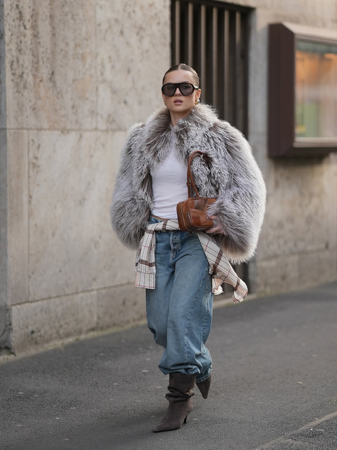Για έναν casual yet edgy χειμερινό συνδυασμό, το oversized faux fur σακάκι είναι το απόλυτο must-have. Φόρεσέ το πάνω από το jean σου, με μπότες που φτάνουν πάνω από τον αστράγαλο, και ολοκλήρωσε το layering με ένα καρό πουκάμισο δεμένο στη μέση. Το look αυτό φωνάζει 90s grunge με σύγχρονη αισθητική.