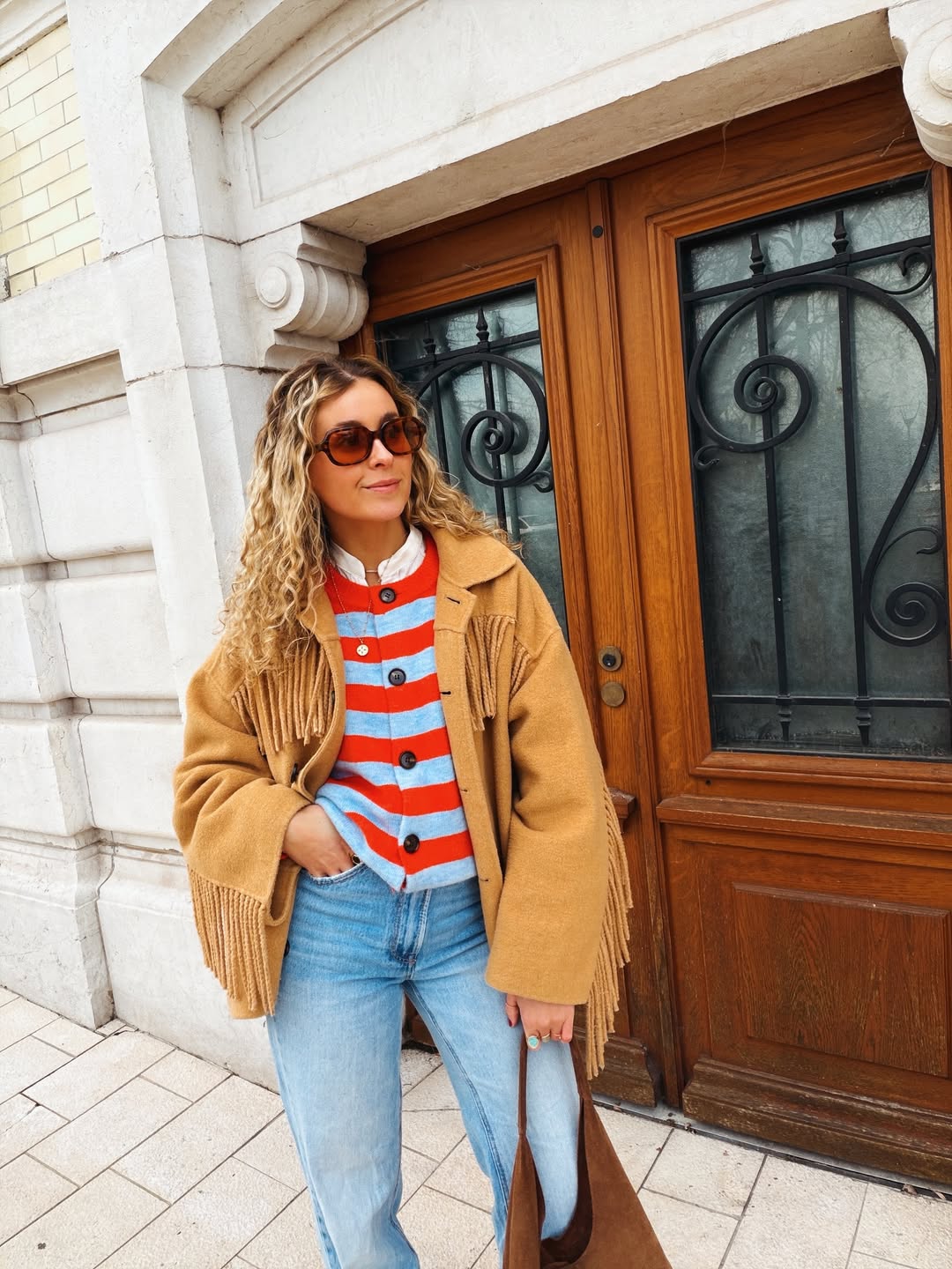 Ριγέ cardigan και σακάκι με κρόσσια για ένα western vibe look