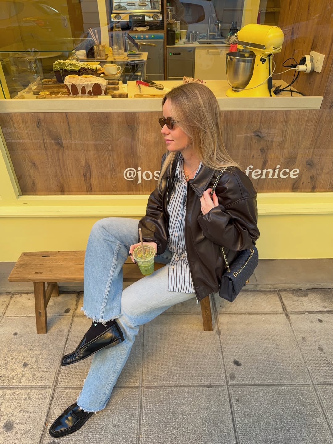 Το casual streetwear βρίσκει τη θέση του στον Φεβράρη με αυτό το easygoing combo. Ένα ριγέ πουκάμισο tucked ή loose πάνω από το jean, συνδιασμένο με ένα bomber σακάκι, δημιουργεί ένα cool, effortless vibe. Sneakers ή combat boots ολοκληρώνουν το look, ιδανικό για καθημερινές εμφανίσεις στην πόλη, coffee runs ή βόλτες με φίλους.