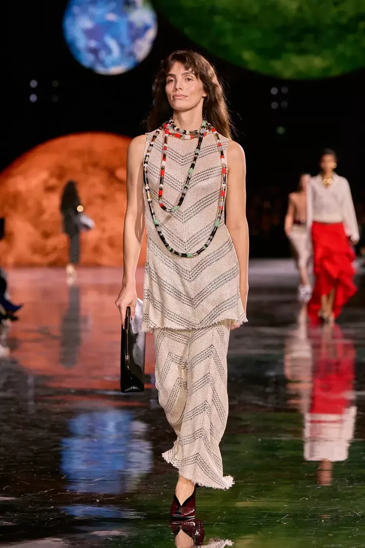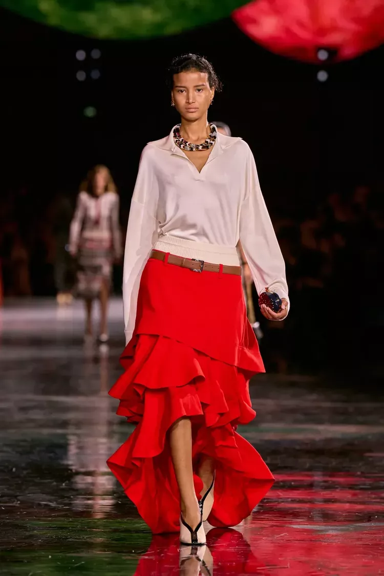 Η καθημερινή ένδυση της CHANEL κινείται μέσα στον χρόνο με φυσική κομψότητα. Η 2.55 ανασχηματίζεται, «τσαλακώνεται» και αγαπιέται περισσότερο, αποκαλύπτοντας τη χαρακτηριστική μπορντό φόδρα της. Οι καμέλιες ενσωματώνονται οργανικά στα μεταξωτά ταγέρ, ενώ τα tweeds φθαρμένα από το παρελθόν προχωρούν διακριτικά στο παρόν, μέσα από νέες υφές και κεντήματα.