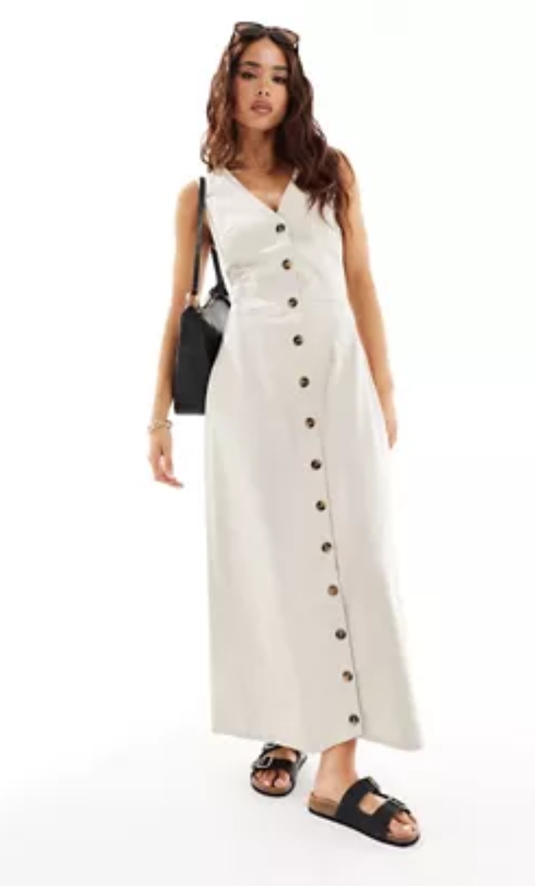 Midi button through linen waistcoat dress από ASOS BUY NOW