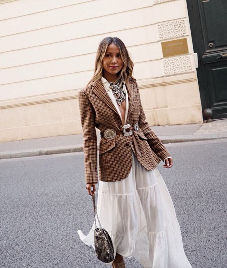Για ένα cozy αλλά στιλάτο καθημερινό look, συνδύασε μια boho denim φούστα με πλεκτό πουλόβερ σε γήινες αποχρώσεις, μπότες ή ankle boots και ολοκλήρωσε το σύνολο με ένα μάλλινο παλτό. Αν προτιμάς κάτι πιο σοφιστικέ, μια κοτλέ boho φούστα φοριέται ιδανικά με ζιβάγκο και blazer σε gingham print, δημιουργώντας ένα σύγχρονο και ισορροπημένο αποτέλεσμα.