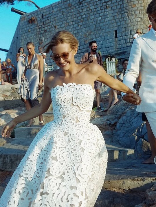 Η τρίτη και πιο πρόσφατη νύφη που φορούσε το φόρεμα ήταν η Marta, η οποία παντρεύτηκε στην ειδυλλιακή Ύδρα. Το Oscar de la Renta με τα laser-cut λουλούδια φόρεμα συνδύασε αρμονικά την απλότητα και τη φυσική ομορφιά του νησιού με την κομψότητα του σχεδίου. Οι φωτογραφίες της τελετής έγιναν viral, καθώς η καθαρή γραμμή του φορέματος συναντούσε την ποιητική αύρα του Αιγαίου, δημιουργώντας ένα αποτέλεσμα που ήταν ταυτόχρονα minimal και άκρως εντυπωσιακό.