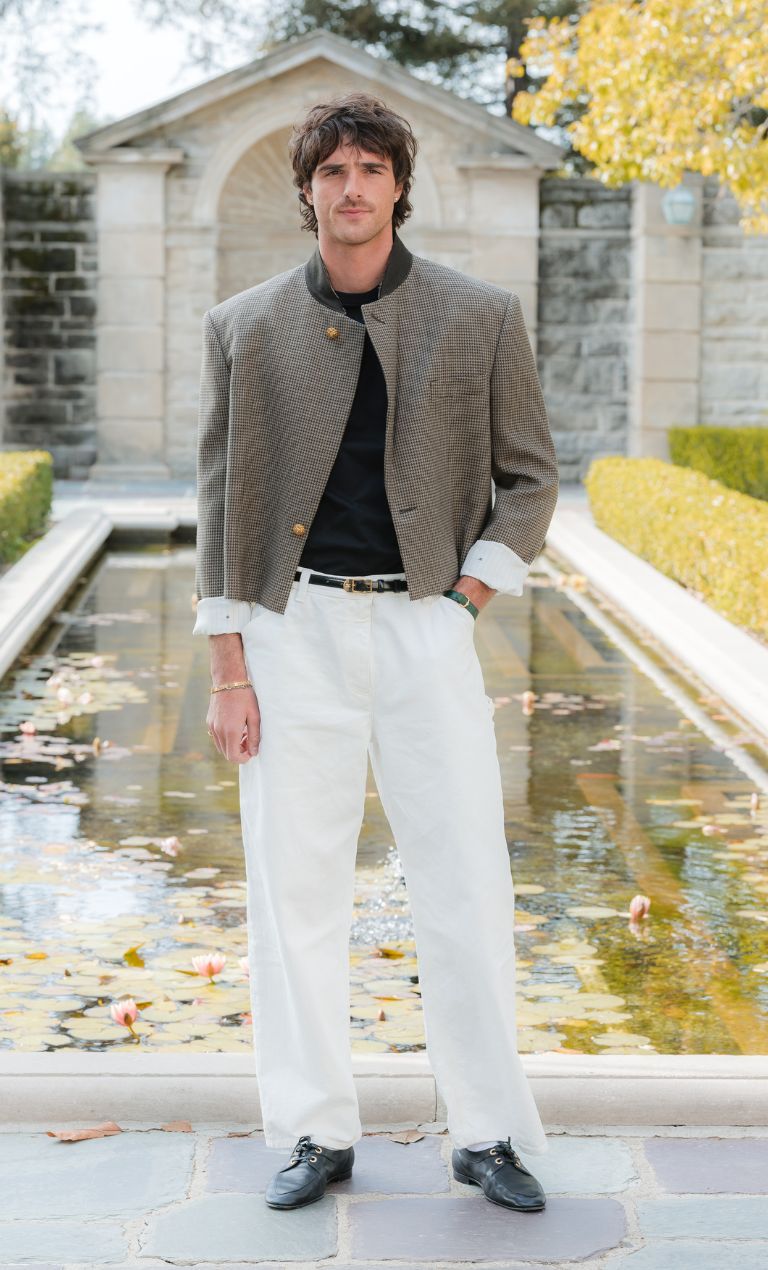 Ο Jacob Elordi, στο πλαίσιο του Wuthering Heights photocall στο Λος Άντζελες στις 28 Ιανουαρίου, επέλεξε ένα κομψό και σύγχρονο look από CHANEL, συνδυάζοντας ένα cropped σακάκι από τη συλλογή άνοιξη–καλοκαίρι 2026 με λευκό παντελόνι, δημιουργώντας μια αρμονική ισορροπία ανάμεσα σε casual και high‑fashion αισθητική. Η εμφάνισή του απέδιδε έναν understated, αλλά κομψό χαρακτήρα, που ταίριαζε στην ατμόσφαιρα της προώθησης της ταινίας και αναδείκνυε τη μοναδική του προσέγγιση στο στυλ.