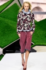 Η συλλογή είχε έντονη προσωπικότητα. Οι oversized σιλουέτες, τα γλυπτικά παλτό και τα πολύ μεγάλα καπέλα από καλάμι έδιναν μια σχεδόν θεατρική αίσθηση στο runway. Υπήρχε επίσης έντονο παιχνίδι με τις υφές, από πλούσιο βελούδο μέχρι γυαλιστερό δέρμα, που δημιουργούσε ενδιαφέρουσες αντιθέσεις και στιγμές πραγματικά εντυπωσιακές. Σε αρκετά looks φαινόταν καθαρά η δημιουργική φαντασία του Ghesquière και η διάθεσή του να πειραματιστεί.